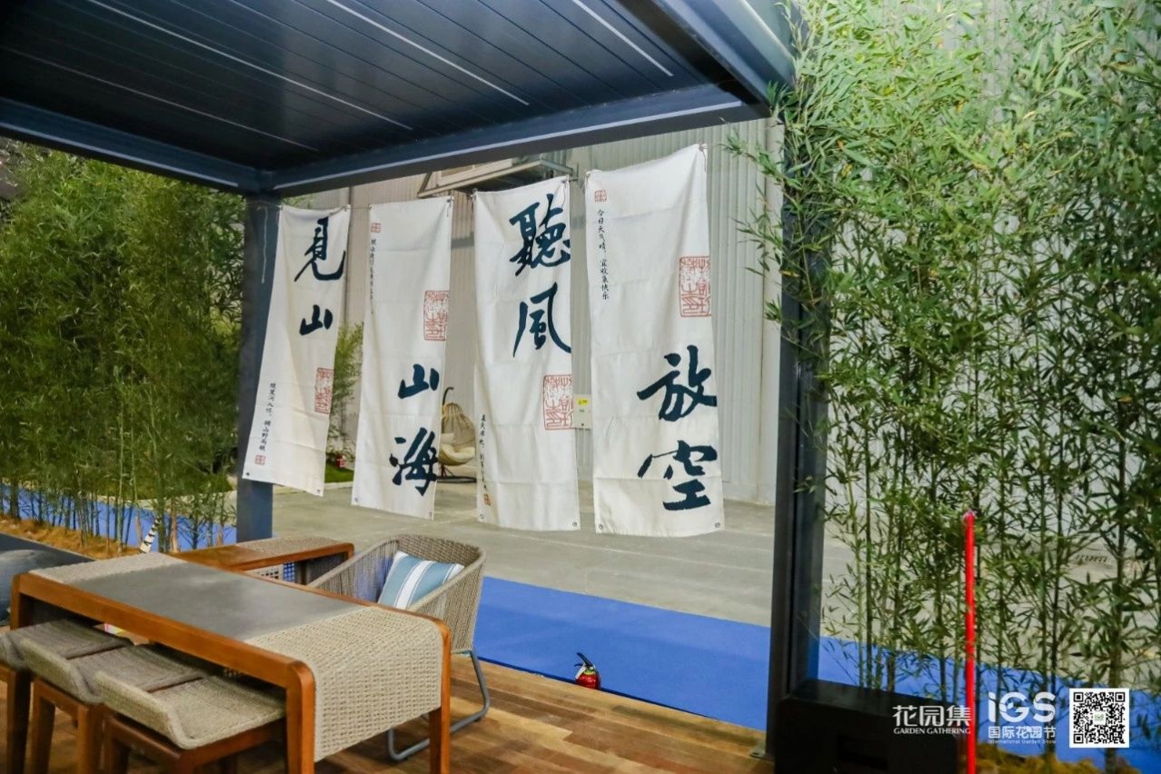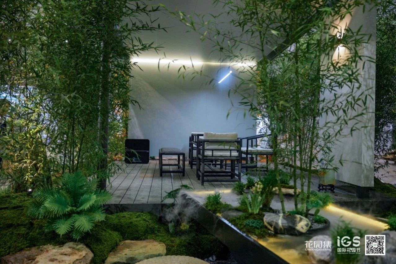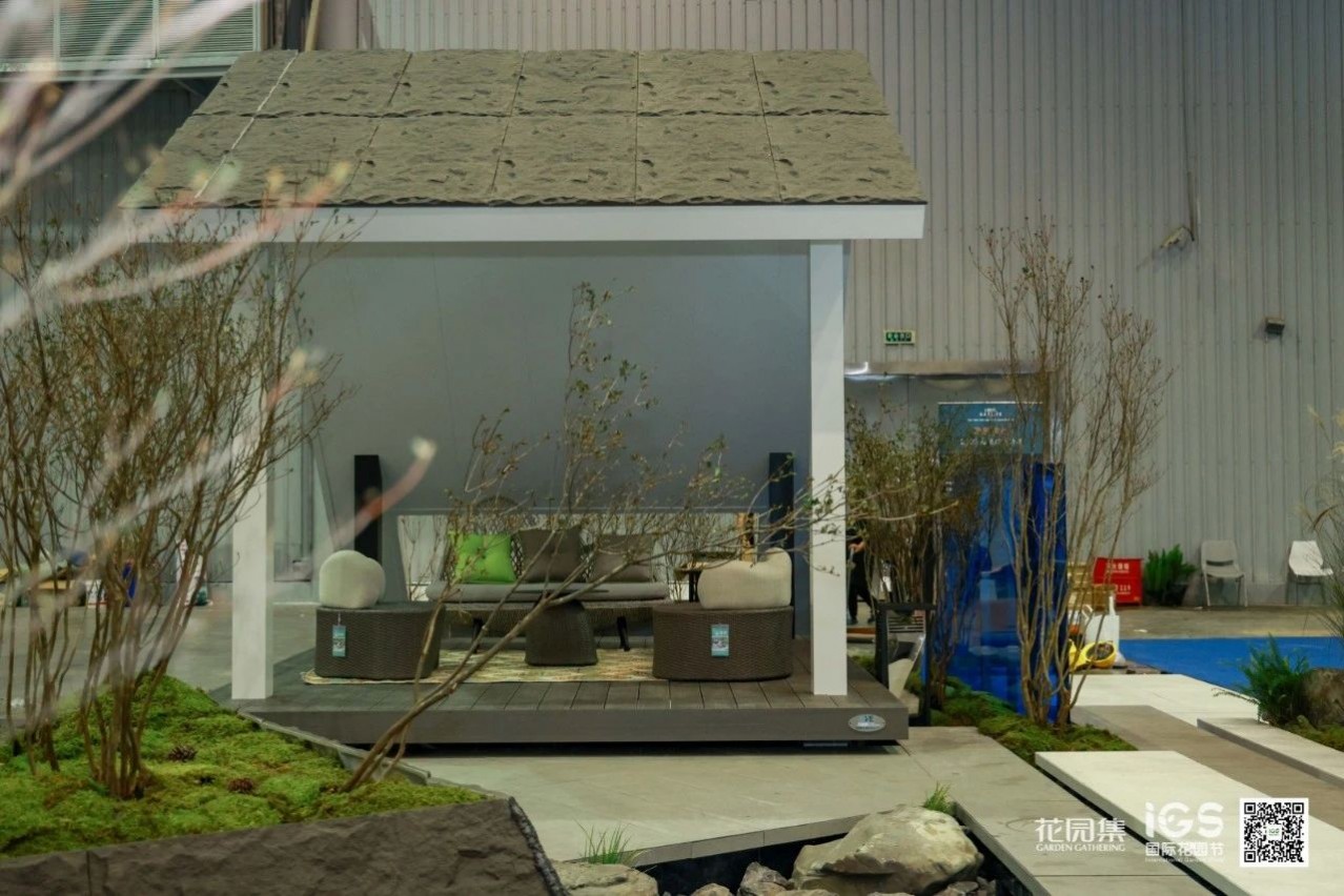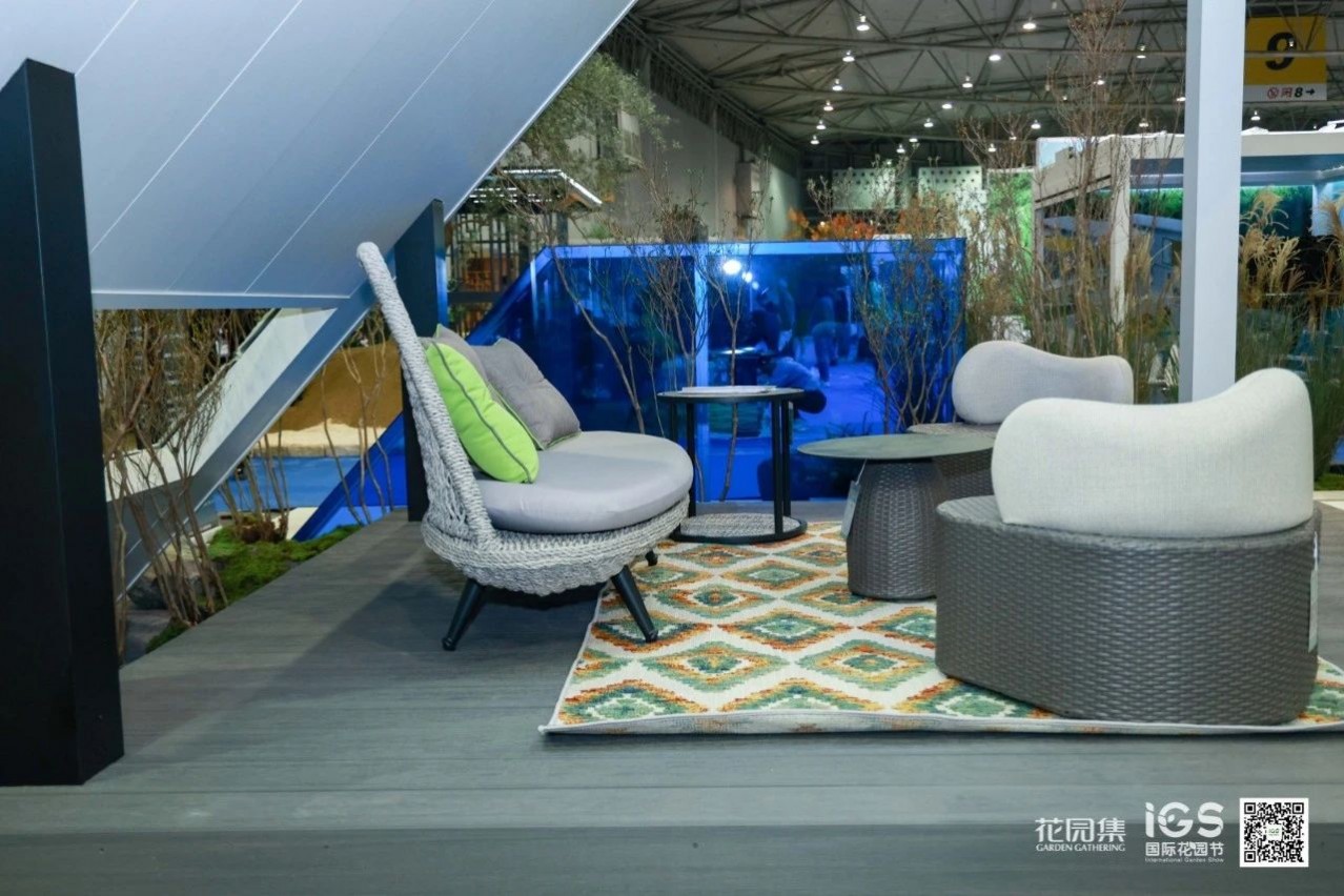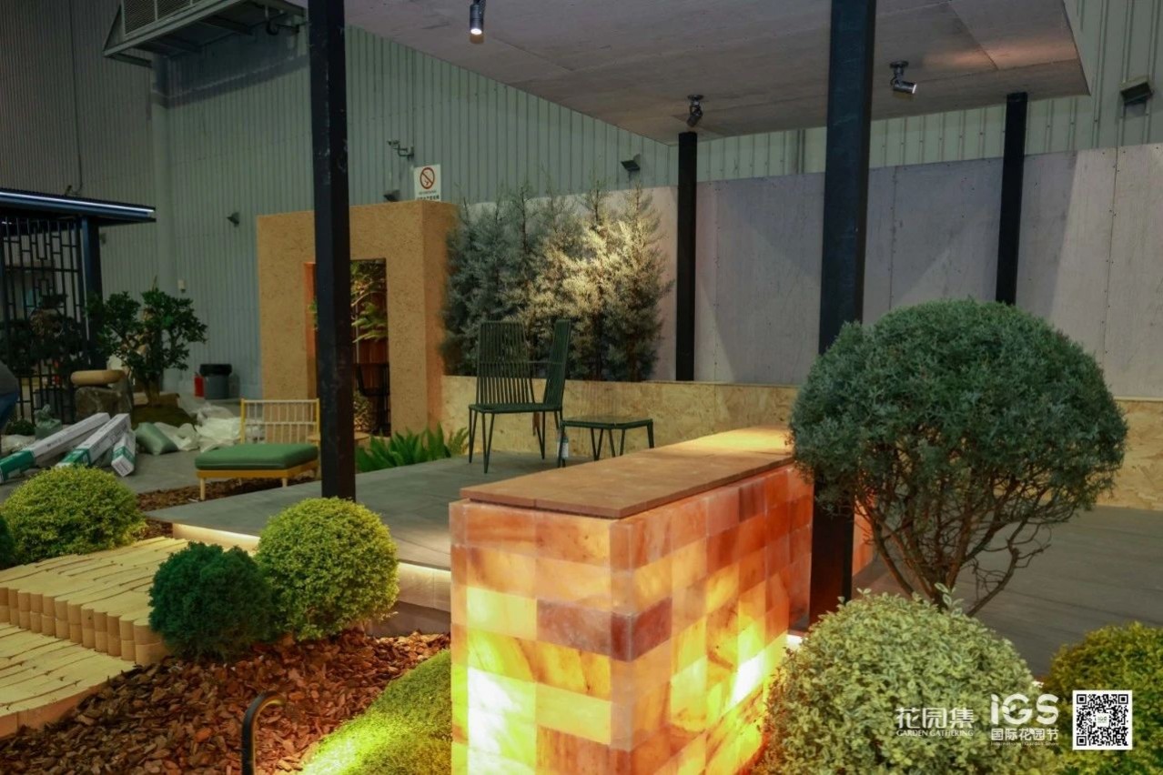 空間承載并展示了休閑、聚會、烤火等庭院常用的三大功能。這樣的展示設計貼近生活,詮釋了花園的生活意義。