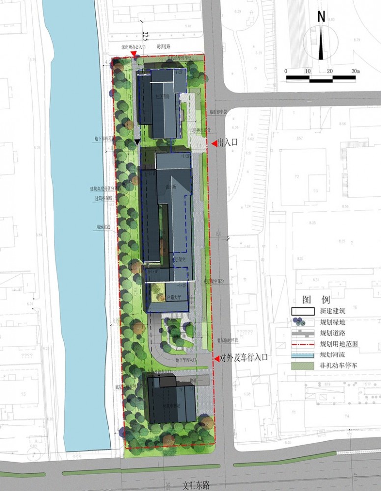 本地塊位于揚州市廣陵區范圍內,文匯東路北側,大學北路東側,石塔南路西側,建筑面積5450平方米。對規劃區域功能進行合理分區,精心組織、科學安排,根據地塊狹長的特點,結合建筑功能,采用一字型布局方式。建筑造型結合現代元素采用揚州地方傳統風格設計,體現傳統與現代的完美統一。結合西側河流與東側道路兩側合理安排景觀小品、小游園,打造精致景觀環境。