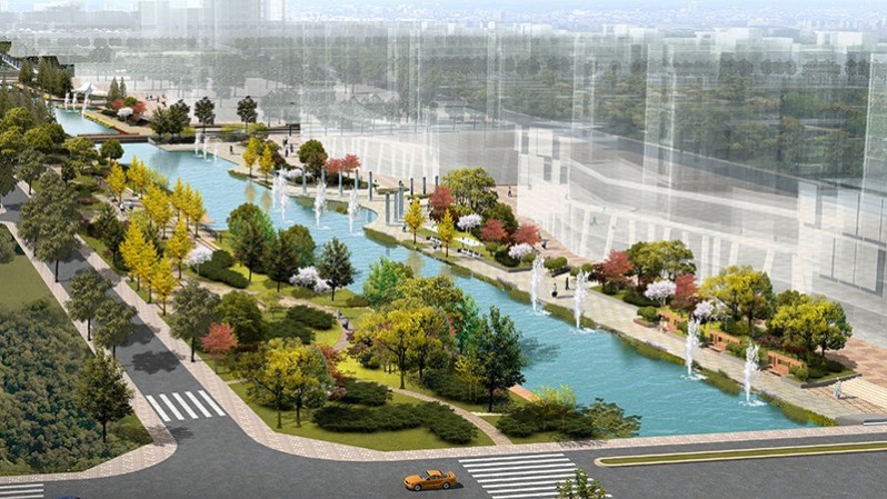 高郵市地處長(zhǎng)江三角洲,位于江蘇沿江經(jīng)濟(jì)開放帶的北側(cè),京滬高速公路和京杭大運(yùn)河縱貫全市南北,運(yùn)河大橋、湖區(qū)漫水公路和高郵、珠湖船連接運(yùn)河?xùn)|西。本案地處高郵市興欣路一一洞庭路段,為北關(guān)河二期濱水景觀設(shè)計(jì),北關(guān)河的西北側(cè)多為廠區(qū)和住區(qū),東南多為農(nóng)田。